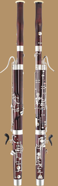 Front and back images of a Puchner bassoon. Puchner is a highly regarded bassoon manufacturer; their instruments are a joy to play.